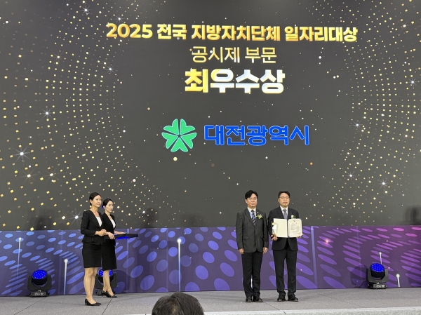 [충청뉴스큐] 대전시는 30일 청주 오스코에서 열린 고용노동부 주관 ‘2025 전국 지방자치단체 일자리대상’ 시상식에서 △일자리 공시제 부문 최우수상 △우수사업 부문 우수상을 동시에 받으며 4년 연속 수상의 영예를 안았다.