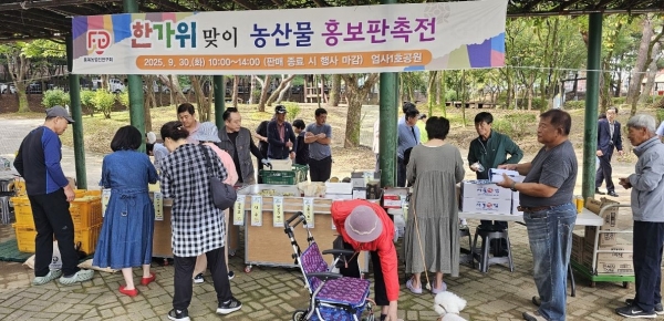 [충청뉴스큐] 계룡시품목농업인연구연합회는 민족 고유 명절인 추석을 맞아 30일 엄사1호공원에서 ‘계룡시 농산물 홍보판촉전’을 개최했다.