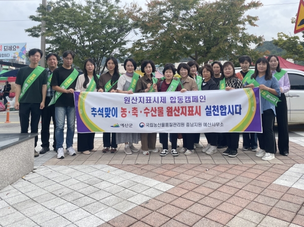 [충청뉴스큐] 예산군은 지난 9월 30일 예산시장에서 국립농산물품질관리원 충남지원 예산사무소, 소비자교육중앙회 예산군지회와 함께 올바른 농축수산물 원산지 표시 합동 캠페인을 펼쳤다.