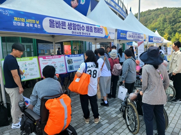 [충청뉴스큐] 아산시 수도사업소는 지난 1일 개최된 제31회 시민의 날 한마음 체육축전 현장에서 ‘올바른 생활하수 배출 캠페인’을 진행하며 시민 참여를 독려하고 생활환경 보호의 중요성을 알렸다.