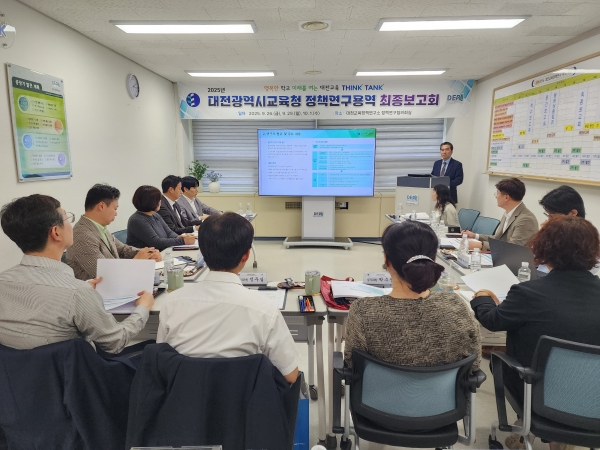 [충청뉴스큐] 대전교육과학연구원 대전교육정책연구소는 9월 26일 29일 10월 1일에 걸쳐 대전교육과학연구원 정책연구협의회실에서 대전시교육청 정책연구용역 최종보고회를 개최했다.