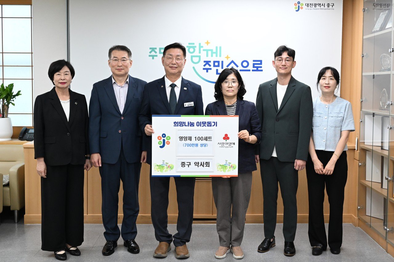 [충청뉴스큐] 대전 중구(구청장 김제선)는 지난 2일 중구 약사회 (회장 구선회)에서 저소득 청소년을 위한 영양제 100개를 기탁했다고 밝혔다.