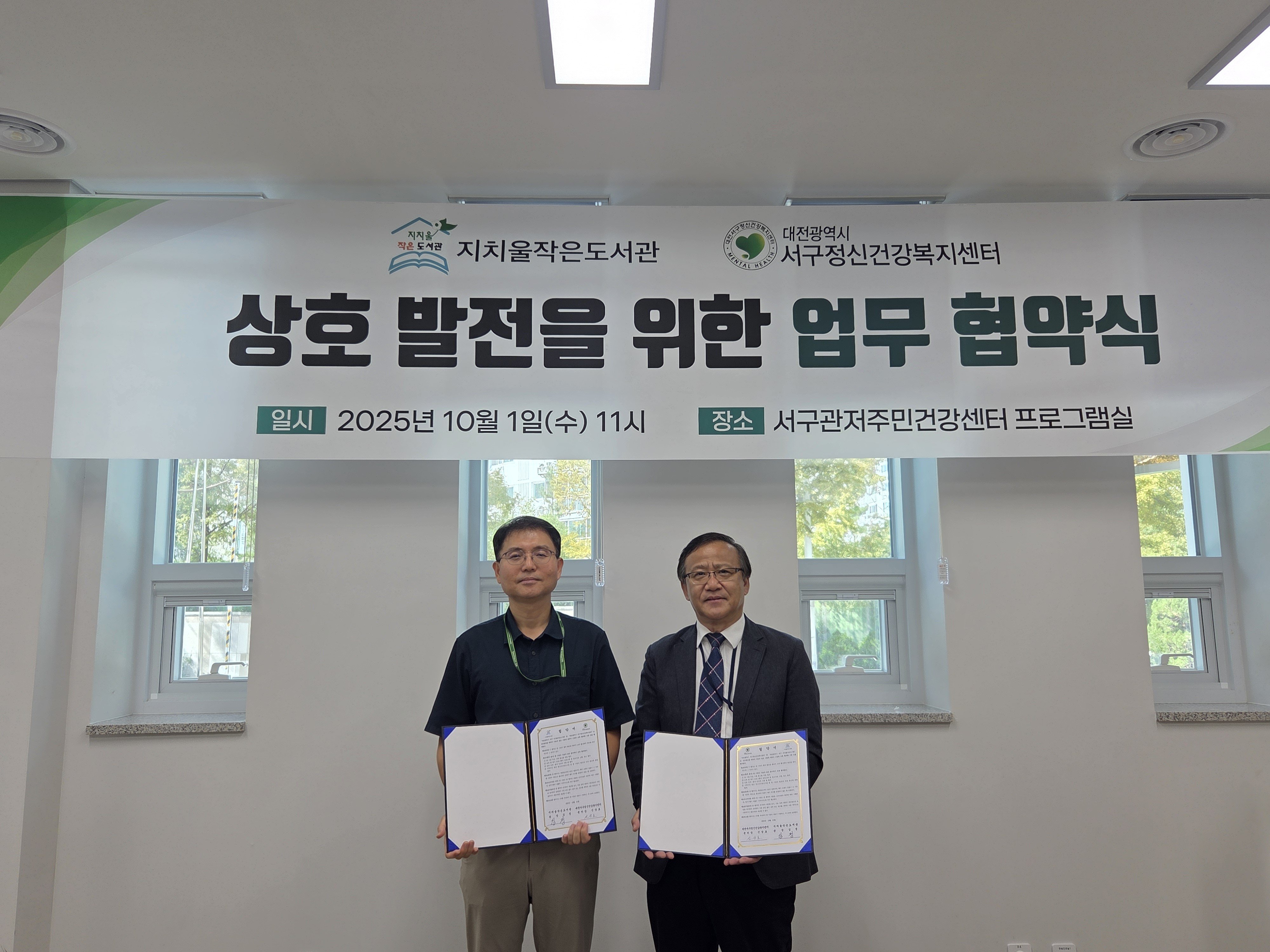 신상호 서구정신건강복지센터장은 “AI 시대를 맞아 정신건강의 중요성이 그 어느 때보다 강조되고 있다”며 “정신건강복지센터의 다양한 프로그램과 도서관의 독서 및 문화 프로그램이 만나 긍정적인 협력 모델을 만들어갈 것”이라고 전했다.