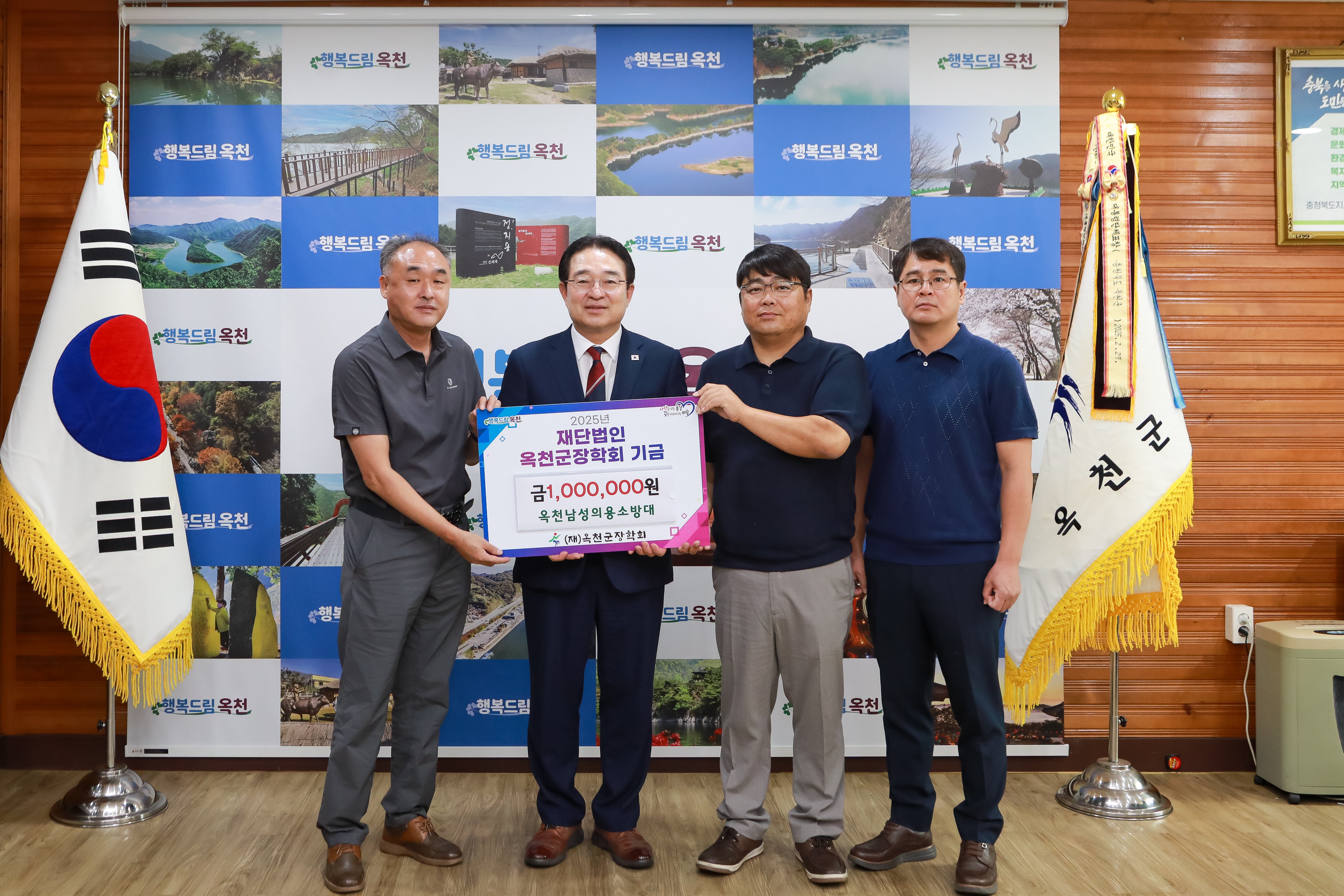 옥천군장학회 이사장 황규철 군수는“10년 넘게 이어진 소중한 기부에 깊은 감사를 드린다”며“옥천남성의용소방대의 변함없는 지원은 우리 장학회의 든든한 버팀목이자, 지역 인재들에게 큰 희망이 되고 있다”고 감사의 뜻을 전했다.