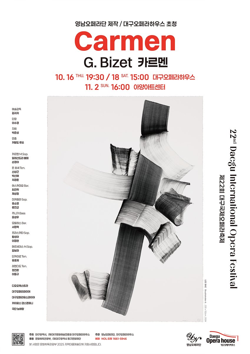 [충청뉴스큐] (재)대구문화예술진흥원 대구오페라하우스는 문화체육관광부 '2025 지역대표예술단체 육성지원사업' 선정된 영남오페라단의 오페라 ‘카르멘’을 제22회 대구국제오페라축제의 메인 프로그램으로 초청해 오는 10월 16일(목), 18일(토), 11월 2일(일)에 개최한다.