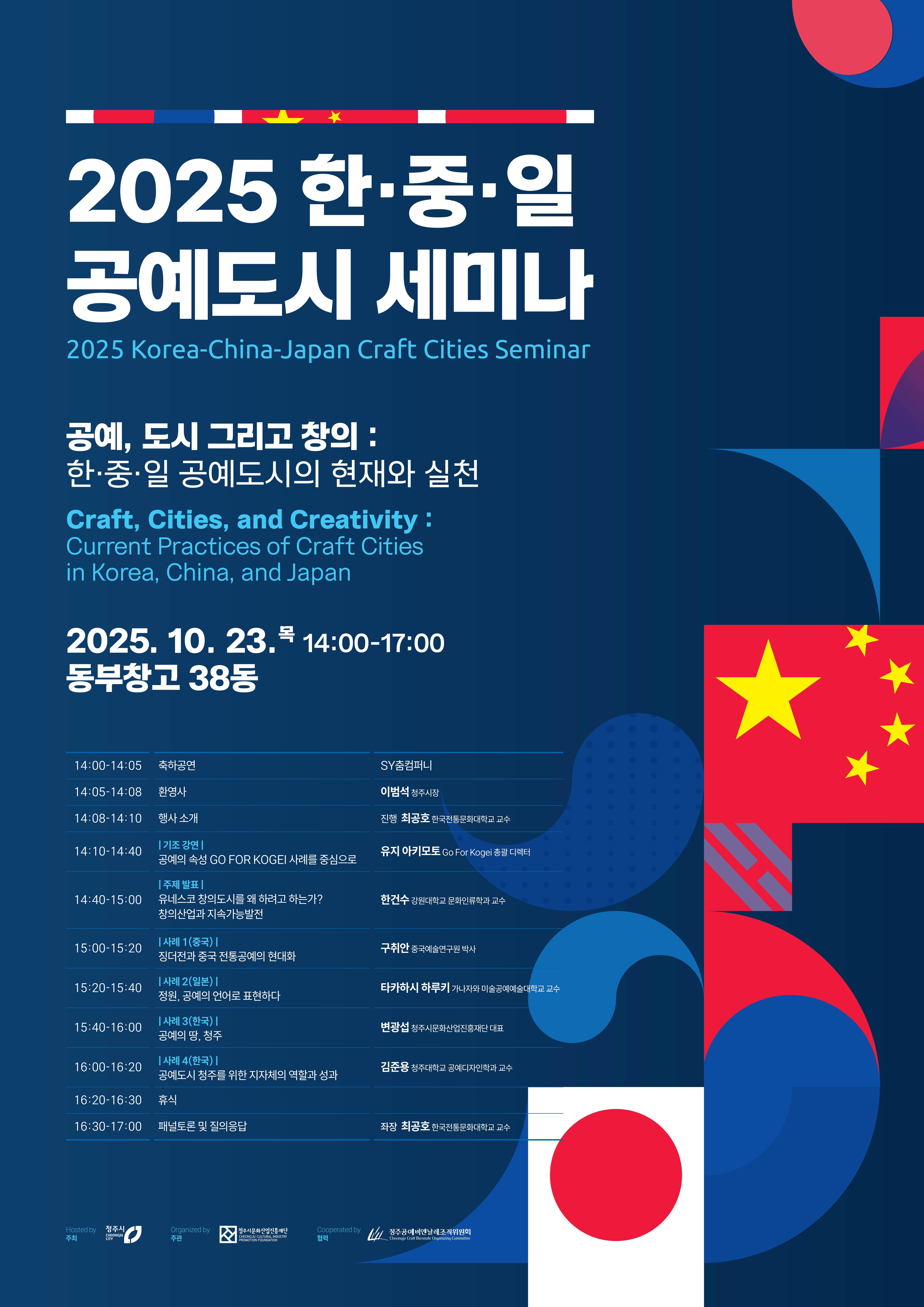 청주공예비엔날레조직위원회(위원장 이범석 청주시장, 이하 조직위)는 오는 23일 오후 2시 문화제조창 동부창고 38동에서 ‘2025 한- 중- 일 공예도시 세미나(Korea-China-Japan Craft Cities Seminar)’를 개최한다.