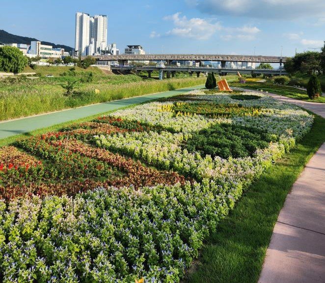 시가 조성한 꽃정원은 △흥덕대교 일원(6,900㎡) △용평교~방서교 일원(1,000㎡) △롤러스케이트장(2,000㎡) 등 3개소다.