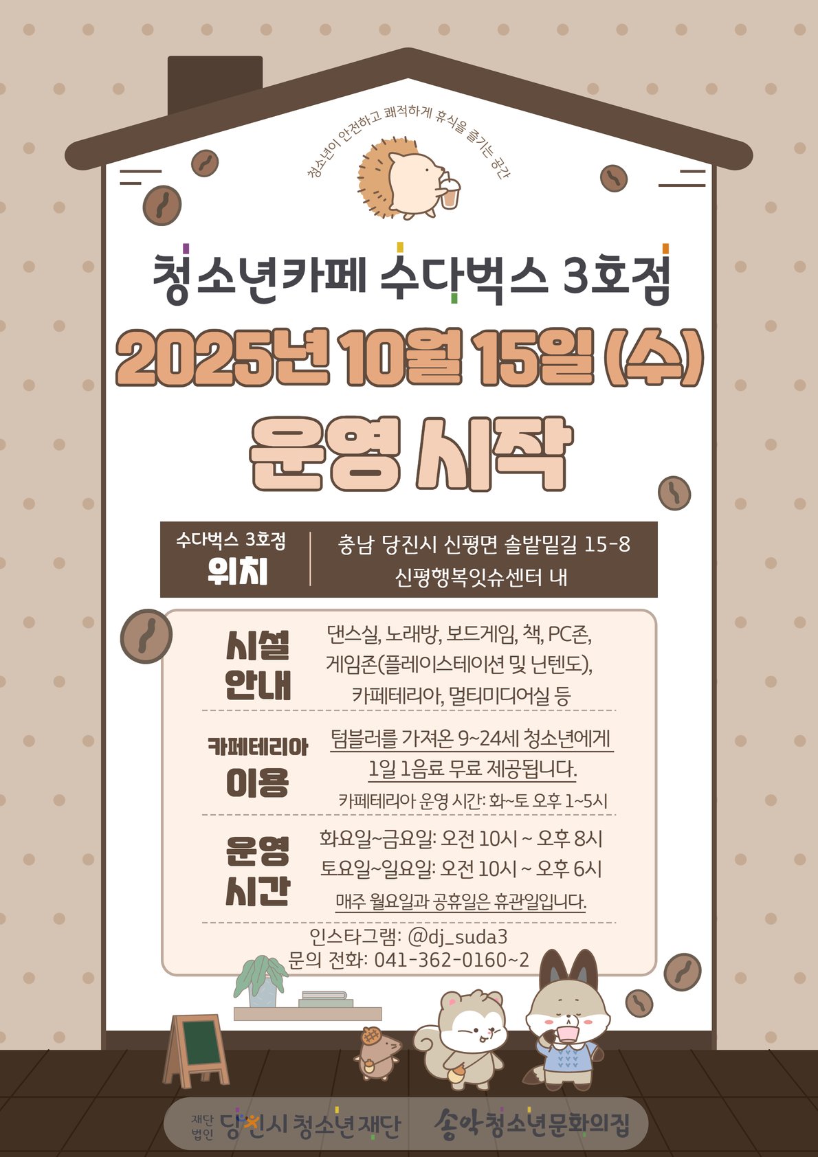 [충청뉴스큐] (재)당진시청소년재단 송악청소년문화의집(관장 김수진)은 10월 15일 당진청소년카페 ‘수다벅스’ 3호점 운영을 시작했다.