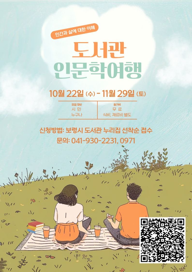 [충청뉴스큐] 보령시립도서관은 오는 10월 22일 수요일부터 ‘인문학 여행’ 행사를 개최한다.