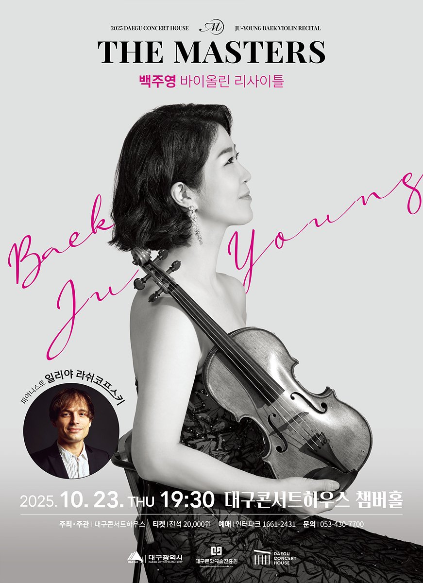 [충청뉴스큐] 대구콘서트하우스의 독주회 시리즈 공연인 ‘The Masters’(이하 ‘더 마스터즈’)의 ‘백주영 바이올린 리사이틀’이 10월 23일 오후 7시 30분 대구콘서트하우스 챔버홀에서 개최된다.