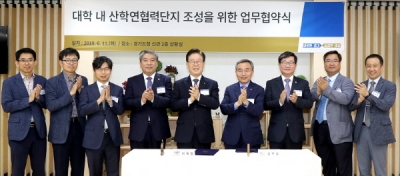 이번 체결식은 경기도와 한양대 에리카캠퍼스가 정부 공모사업인 ‘대학 내 산학연협력단지 조성사업’에 최종 선정되면서 이뤄진 것으로, 이재명 경기도지사, 김우승 한양대학교 총장, 전해철 국회의원 등이 참석했다.