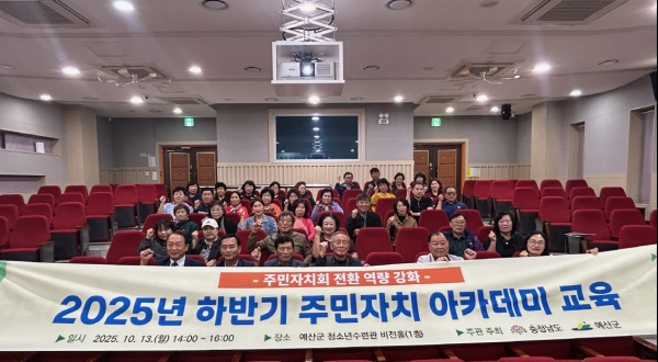 [충청뉴스큐] 예산군은 예산군청소년수련관 비전홀에서 주민자치회 미전환 읍면 주민자치위원 50여명을 대상으로 ‘2025년 하반기 주민자치 아카데미 집합교육’을 진행했다고 17일 밝혔다.