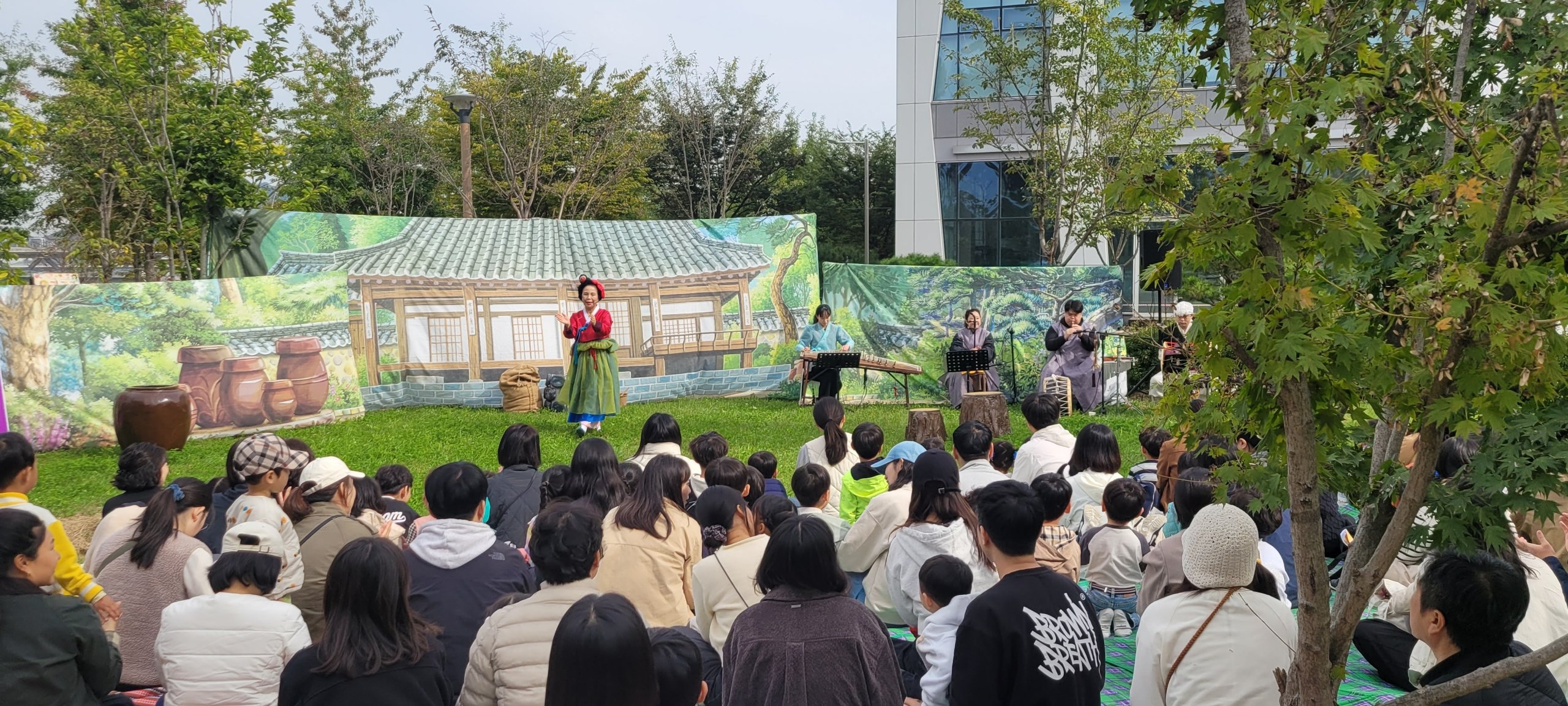 한빛유치원 교사와 유아들은 행사 준비 단계에서부터 가족에게 보낼 초대장과 부스 현수막을 직접 만들어 ‘모두가 함께 만들고 참여하는’ 행사에 대한 기대감을 높였다. 행사 당일에는 가족과 함께 재활용 용기를 활용한 ‘식물 심기 체험’, 자연 소재를 이용한 ‘가을 담은 풍경 만들기’, ‘양말목 거미줄 놀이터’, ‘알밤 줍기’, 등 다양한 활동과 금강을 배경으로 펼쳐진 마당극 공연도 함께 관람했다.