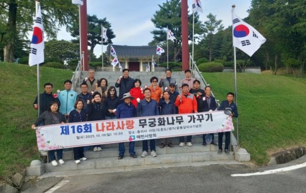 [충청뉴스큐] 예산군 매헌사랑회는 충의사와 도중도 일원에서 ‘제16회 나라사랑 무궁화나무 가꾸기’ 행사를 개최했다고 23일 밝혔다.