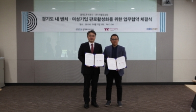 코리아경기도주식회사는 ㈜더블유쇼핑과 지난 11일 판교 스타트업캠퍼스에서 이 같은 내용을 골자로 한 ‘경기도 우수 여성·벤처기업 홈쇼핑 진출 판로 진출을 위한 업무협약’을 체결했다고 밝혔다.