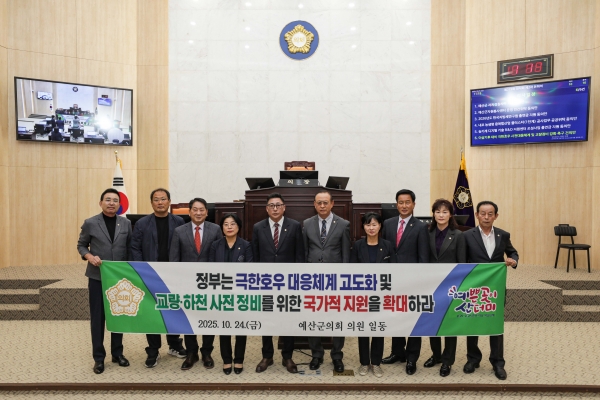 예산군의회의 이번 건의안 채택이 향후 중앙정부의 기후재난 대응 정책과 지방 재정지원 체계 개선 논의에 어떤 영향을 미칠지 주목된다.