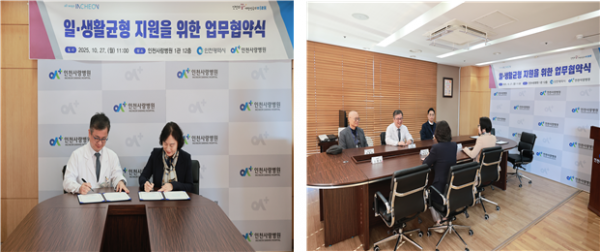 [충청뉴스큐] 인천광역시는 10월 27일 일·생활 균형과 저출산 문제 해결, 시민 건강 증진을 위해 인천사랑병원과 업무협약을 체결했다고 밝혔다.