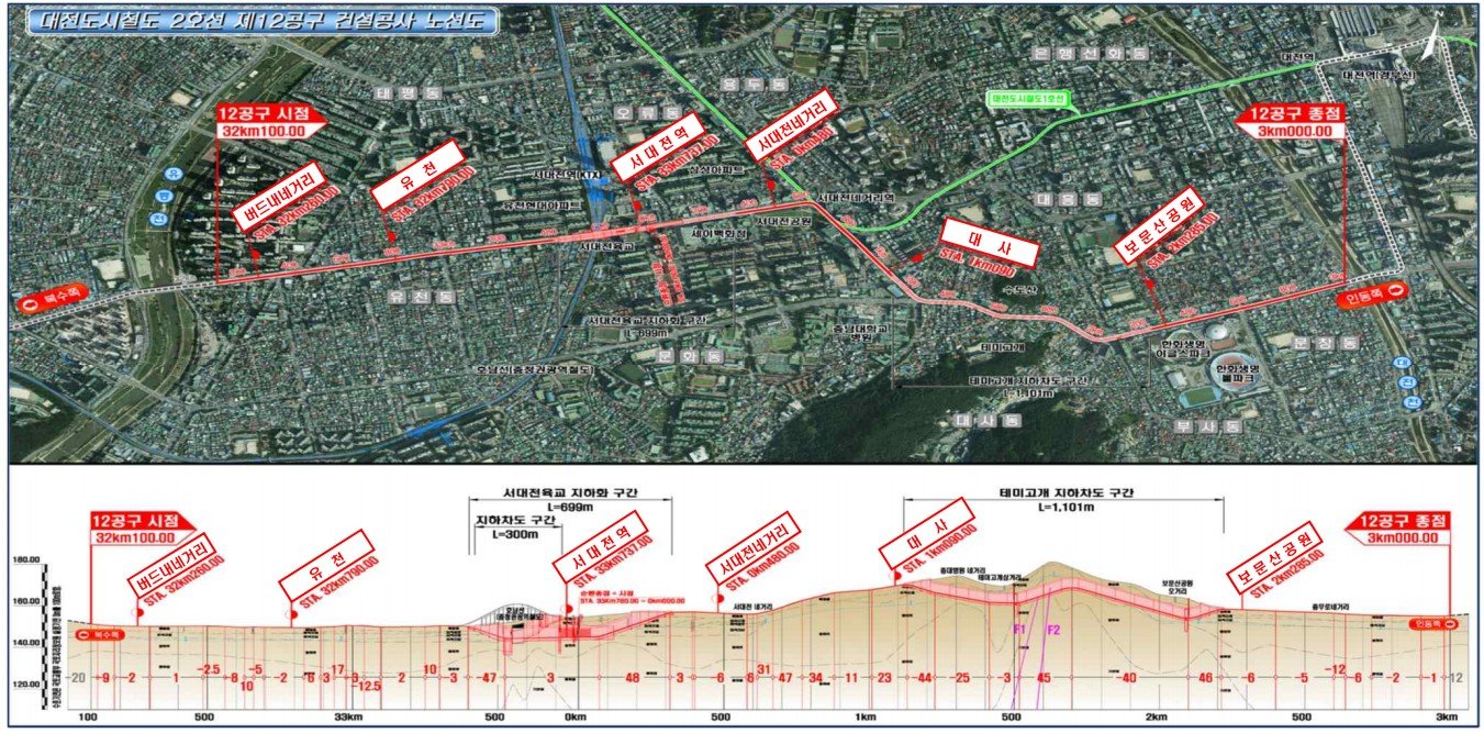 12공구는 대전 중구 유천동에서 문창동까지 이어지는 총연장 4.68km 구간으로 이번 공사에는 특히 교통 혼잡의 주요 지점인 테미고개와 서대전육교 구간을 지하화하는 작업이 포함되어 있어 지역 내 교통 환경 개선에 큰 기대를 모으고 있다.