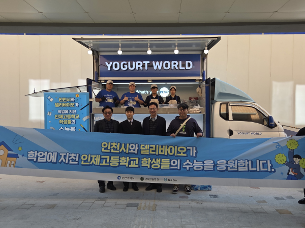 [충청뉴스큐] 인천광역시는 지역 프랜차이즈 기업인 ㈜델리바이오와 함께 수능을 앞둔 고3 수험생들에게 따뜻한 응원의 메시지를 전하며 ‘관내 고등학교 학업 격려 및 소속감 고취를 위한 교육기관 연계 협약’을 체결했다고 10월 28일 밝혔다.