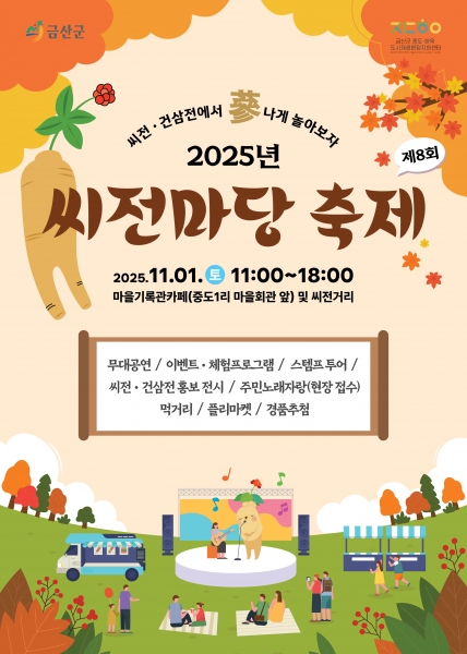 주요 프로그램으로 인삼과 인삼씨앗을 활용한 체험 및 지역 내 문화예술인들의 공연이 펼쳐질 예정이다.