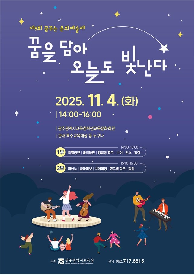 광주시교육청(교육감 이정선)은 오는 11월 4일 오후 2시 시교육청학생교육문화회관에서 특수교육대상학생이 펼치는 ‘제9회 꿈꾸는 문화예술제’를 개최한다.