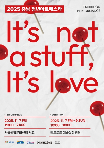"2025 충남청년아트페스타"에 모인 청년예술인들은 “예술을 예술답게 하는 것은, 얼마나 나의 이야기를 ‘나답게’ 사랑하고 있는가”라는 질문을 던지며‘IT’ S NOT A STUFF, IT’ S LOVE’라는 주제로 프로젝트를 기획했다.