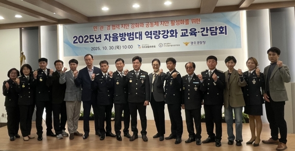 안진 광주자치경찰위원장은 “민·관·경이 함께 더욱 안전한 공동체를 만들어 갈 수 있도록 이번 교육을 준비했다”며 “앞으로도 자율방범대 간 협력체계를 더욱 공고히 해 지역사회 안전문화 확산에 힘쓰겠다”고 밝혔다.
