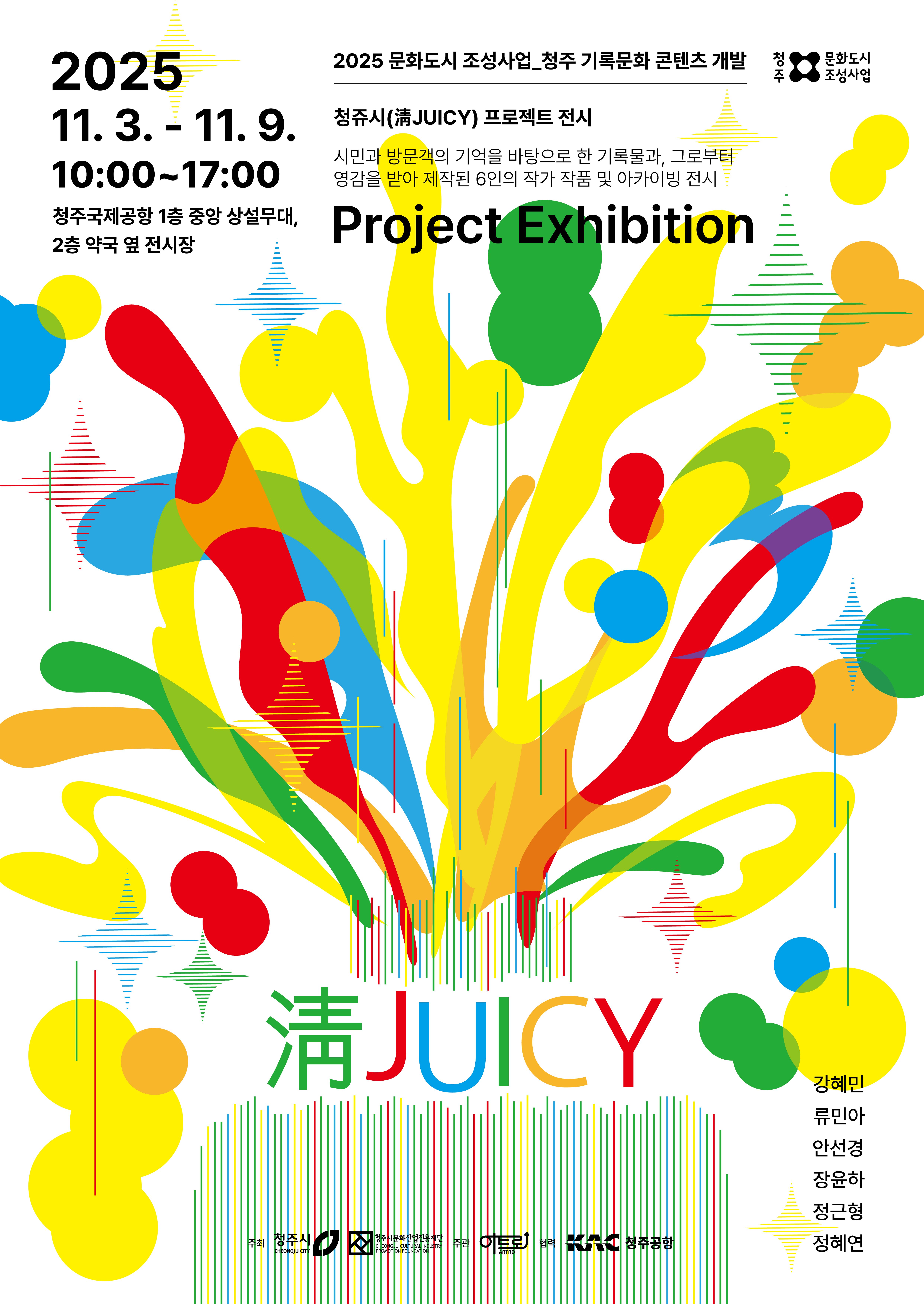 [충청뉴스큐] 청주시와 청주시문화산업진흥재단(대표이사 변광섭, 이하 청주문화재단)은 오는 11월 3일부터 9일까지 청주국제공항에서 지역 예술인 작품 전시회인 ‘청쥬시(淸JUICY) 프로젝트’를 진행한다고 전했다.