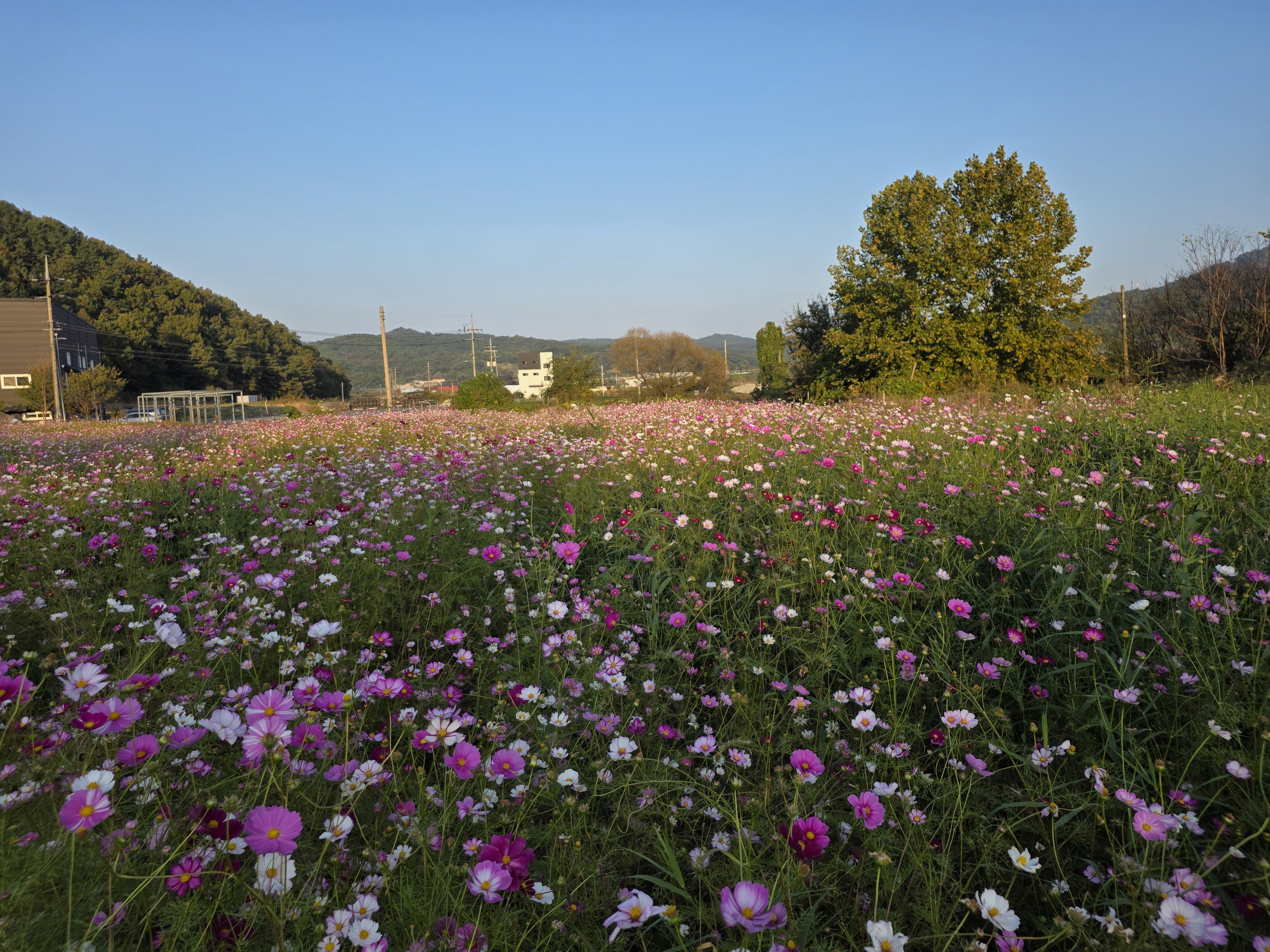 국곡리 주민들이 자발적으로 힘을 모아 가꾼 코스모스 정원은 마을을 따라 흐르는 용수천변 일원에 약 1만㎡ 규모로 조성됐다.