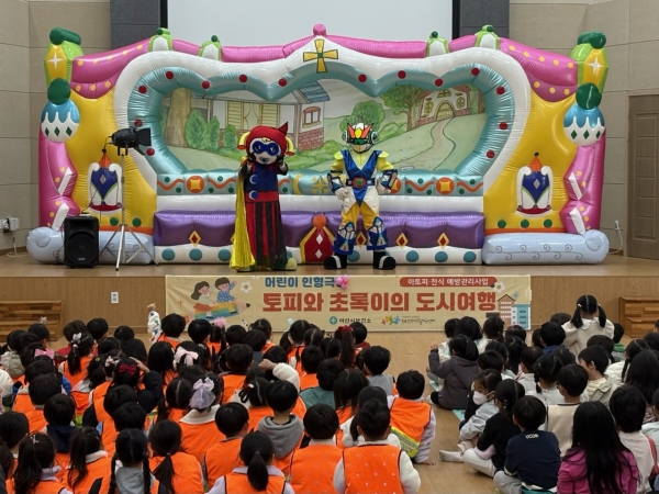 [충청뉴스큐] 아산시는 30일 동부건강생활지원센터 다목적 강당에서 지역 내 아토피·천식안심학교를 포함한 미취학 아동 및 유치원·어린이집 등 개소 원아를 대상으로 인형극 ‘토피와 초록이의 도시여행’ 공연을 진행했다고 밝혔다.
