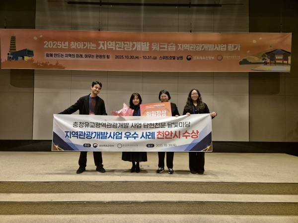 [충청뉴스큐] 천안시는 문화체육관광부와 한국문화관광연구원 주관의 2025년 찾아가는 지역관광개발 워크숍 지역관광개발사업 평가에서 ‘담헌천문&달빛마당’ 건립 사업이 우수사례 지자체로 선정돼 위원장상을 수상했다고 3일 밝혔다.
