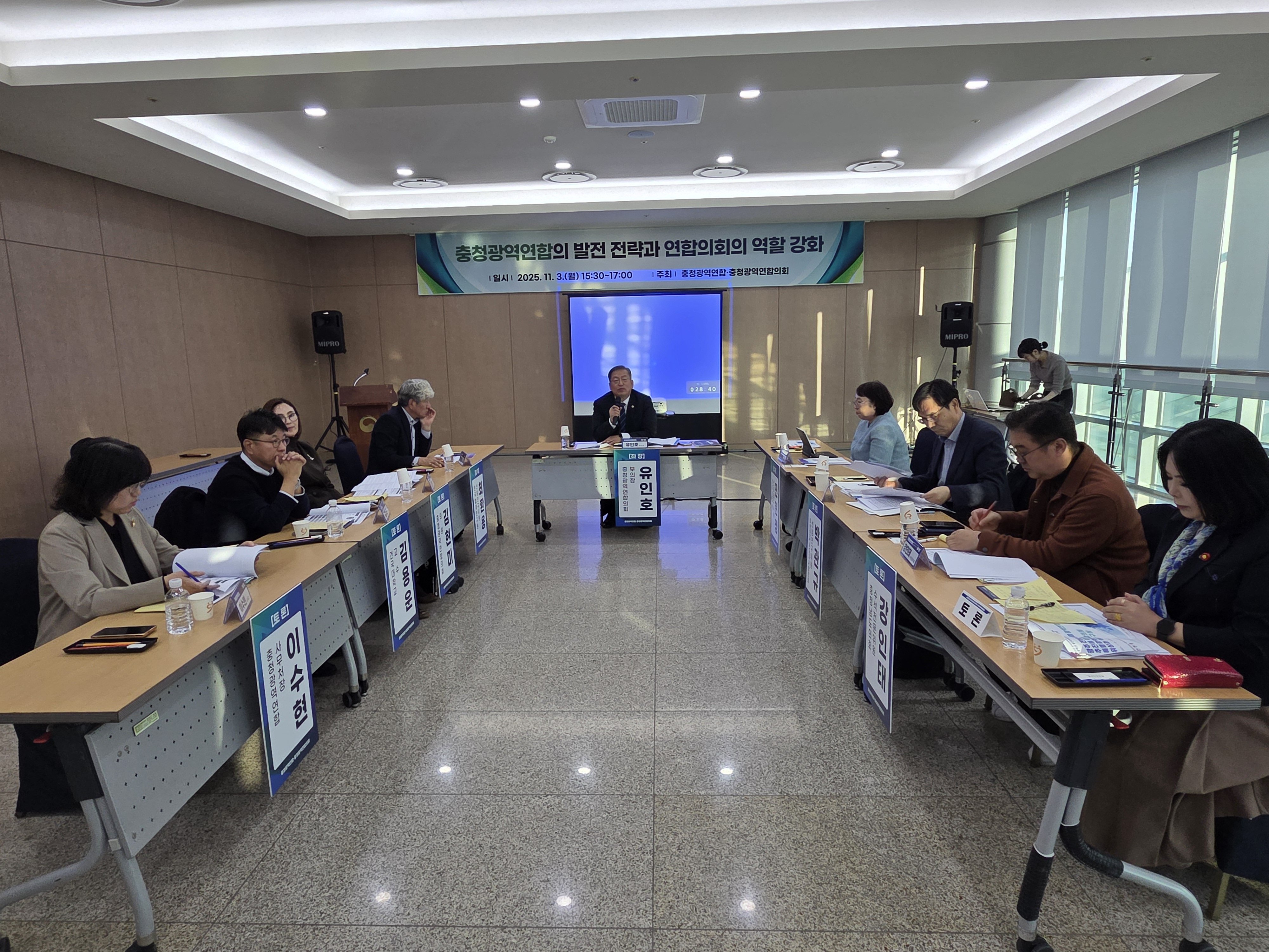 좌장을 맡은 유인호 부의장은 “충청광역연합이 출범 1주년을 앞두고 제도적 기반과 인력·재정 여건을 강화해야 지속 가능한 연합으로 발전할 수 있다”며 “충청권 4개 시·도가 체감할 수 있는 협력 효과를 위해서는 중앙정부의 재정 지원과 법·제도적 뒷받침이 절실하다”고 밝혔다.