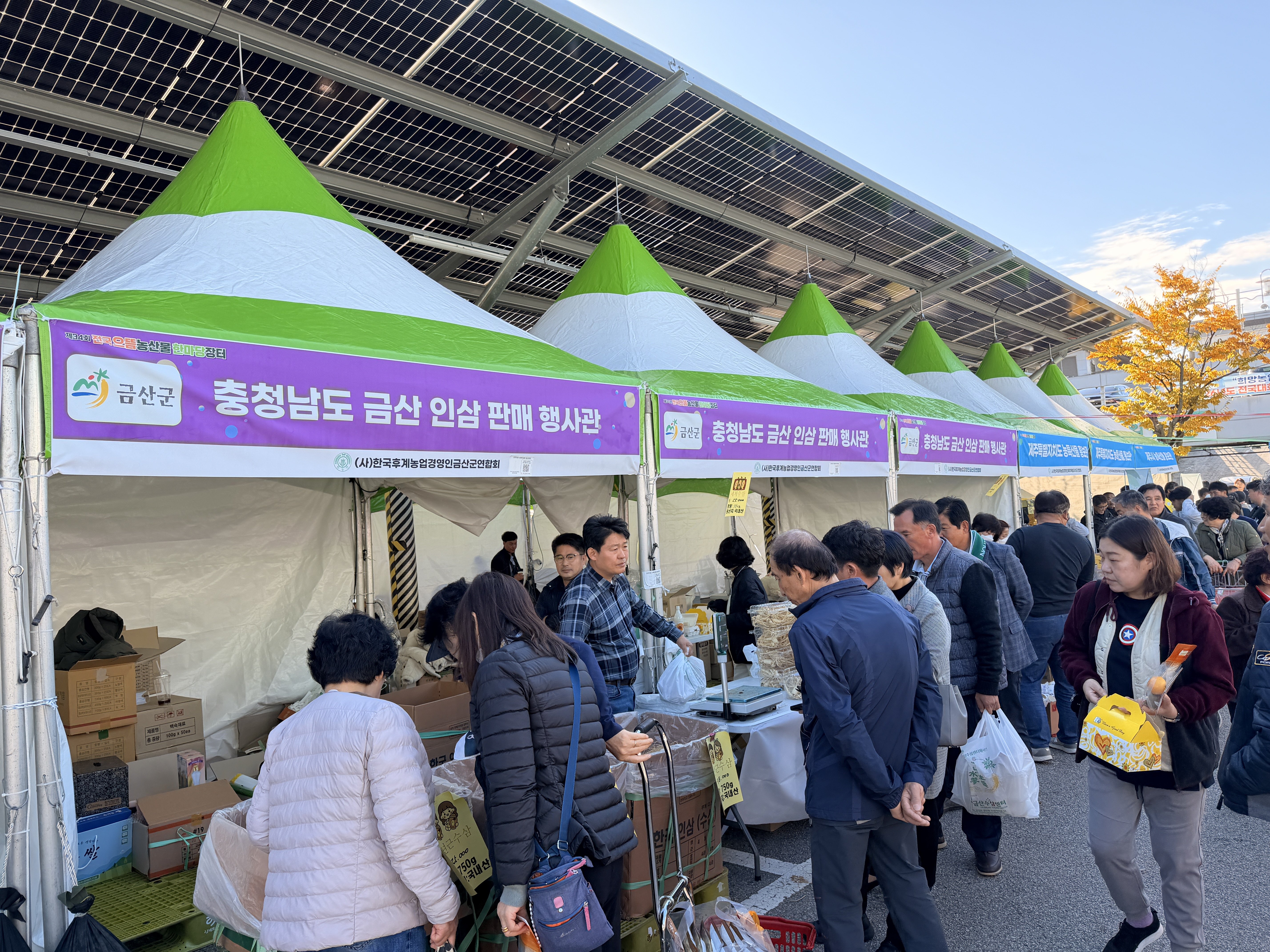 [충청뉴스큐] 금산군은 11월 1일부터 3일까지 농협수원유통센터에서 열린 제34회 전국으뜸농산물한마당에 참가해 금산을 대표하는 인삼의 우수성을 전국 소비자들에게 알렸다.