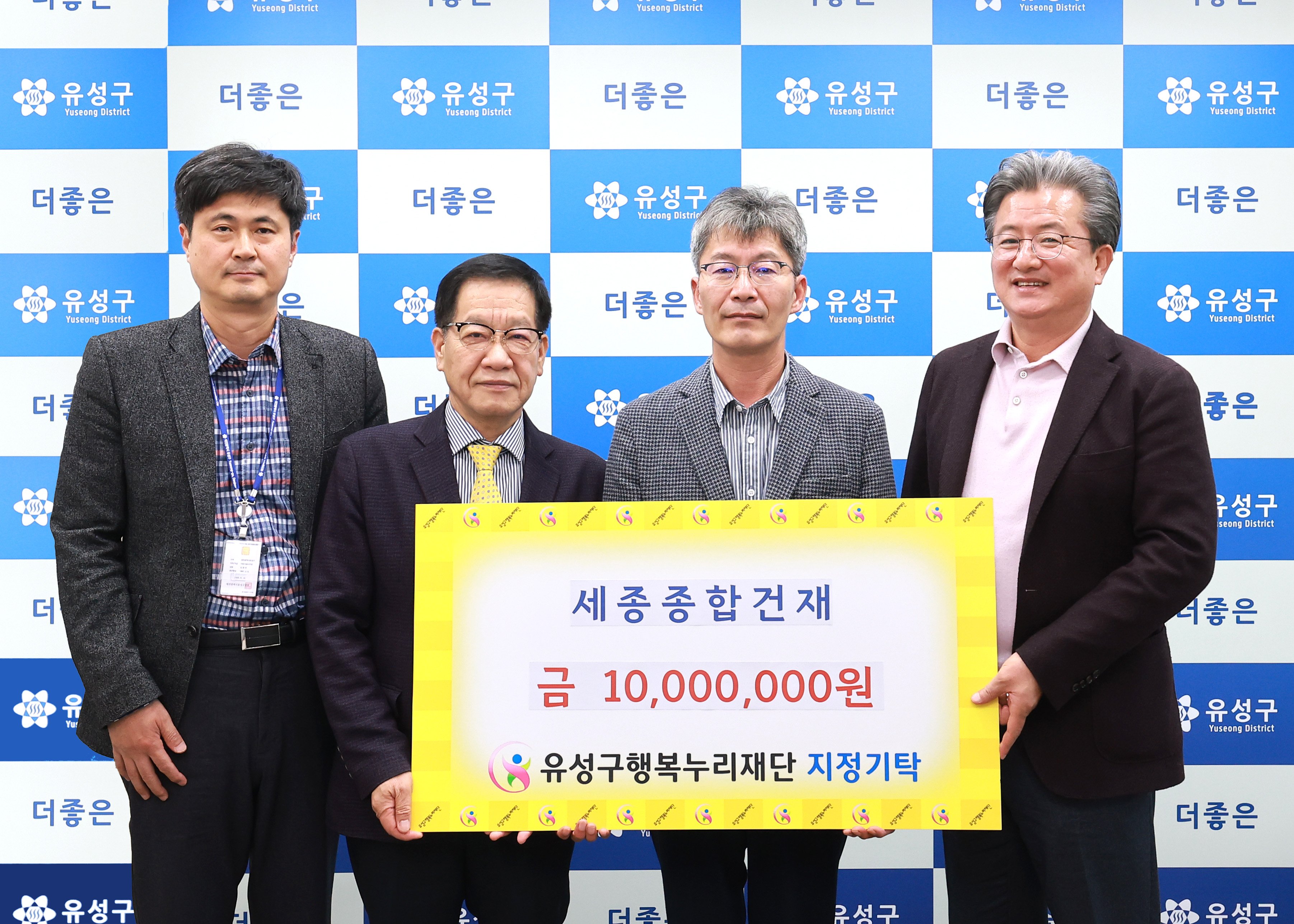 [충청뉴스큐] 대전 유성구는 세종종합건재가 유성구 행복누리재단에 후원금 1,000만원을 기탁했다고 4일 밝혔다.