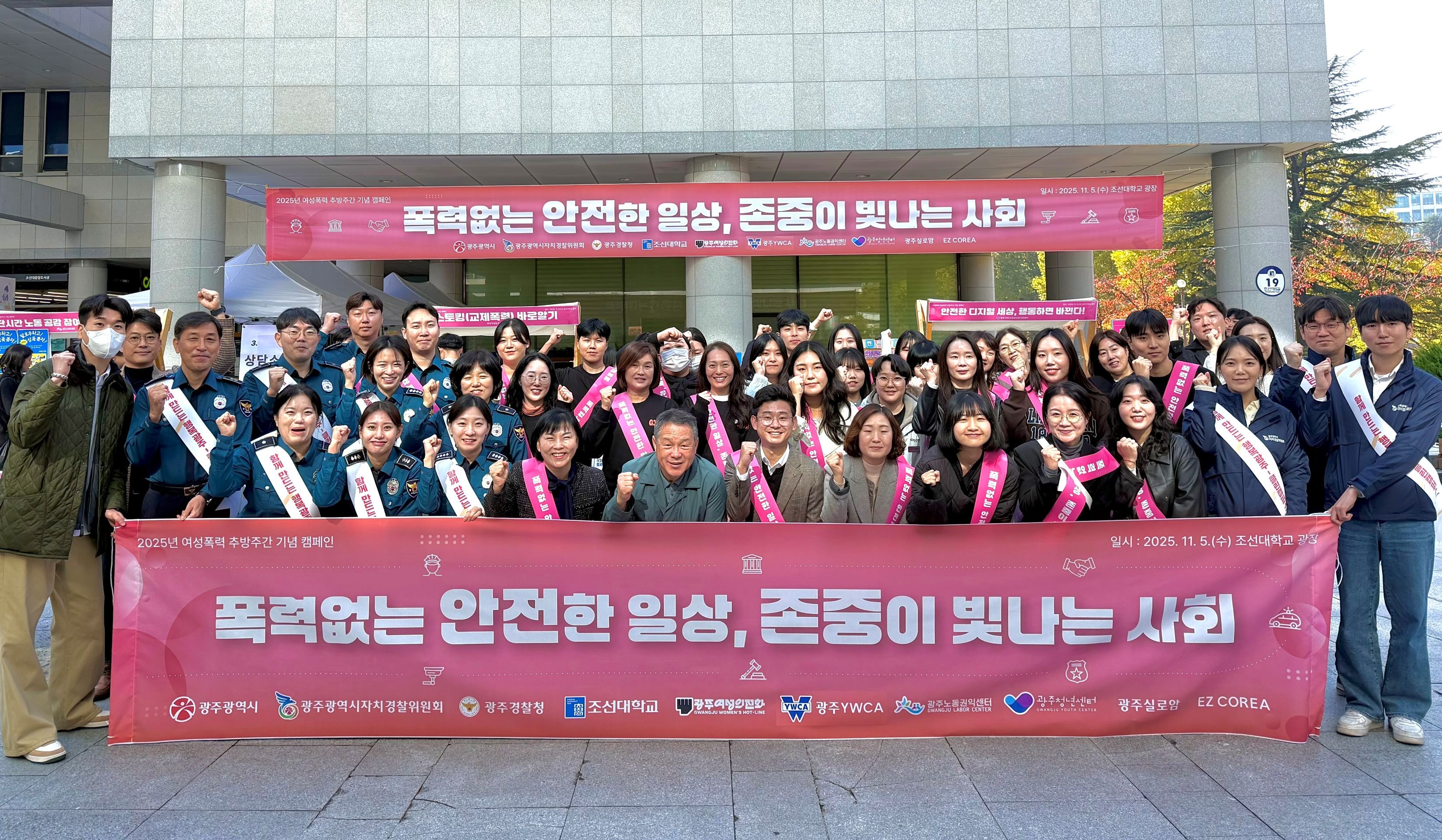 이번 캠페인은 광주시를 비롯해 광주자치경찰위원회, 광주경찰청, 조선대학교 인권센터, 광주노동권익센터, 광주청년센터, 광주YWCA 통합상담지원센터, 광주여성인권상담소, 사단법인 실로암 등 9개 기관이 참여했다.