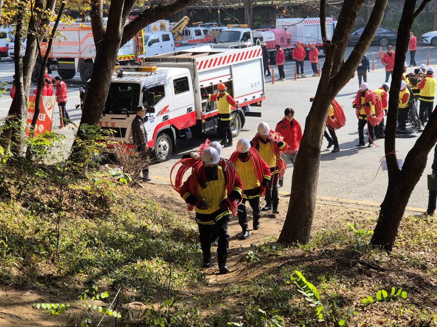 경연은 산불발생 현장의 여건과 유사한 보문산에서 실시했으며 500m의 거리에 설정한 가상의 산불현장으로 산불진화호스를 신속히 전개해 목표지점에 진화용수를 가장 빨리 살수하는 팀이 우승을 하게된다.