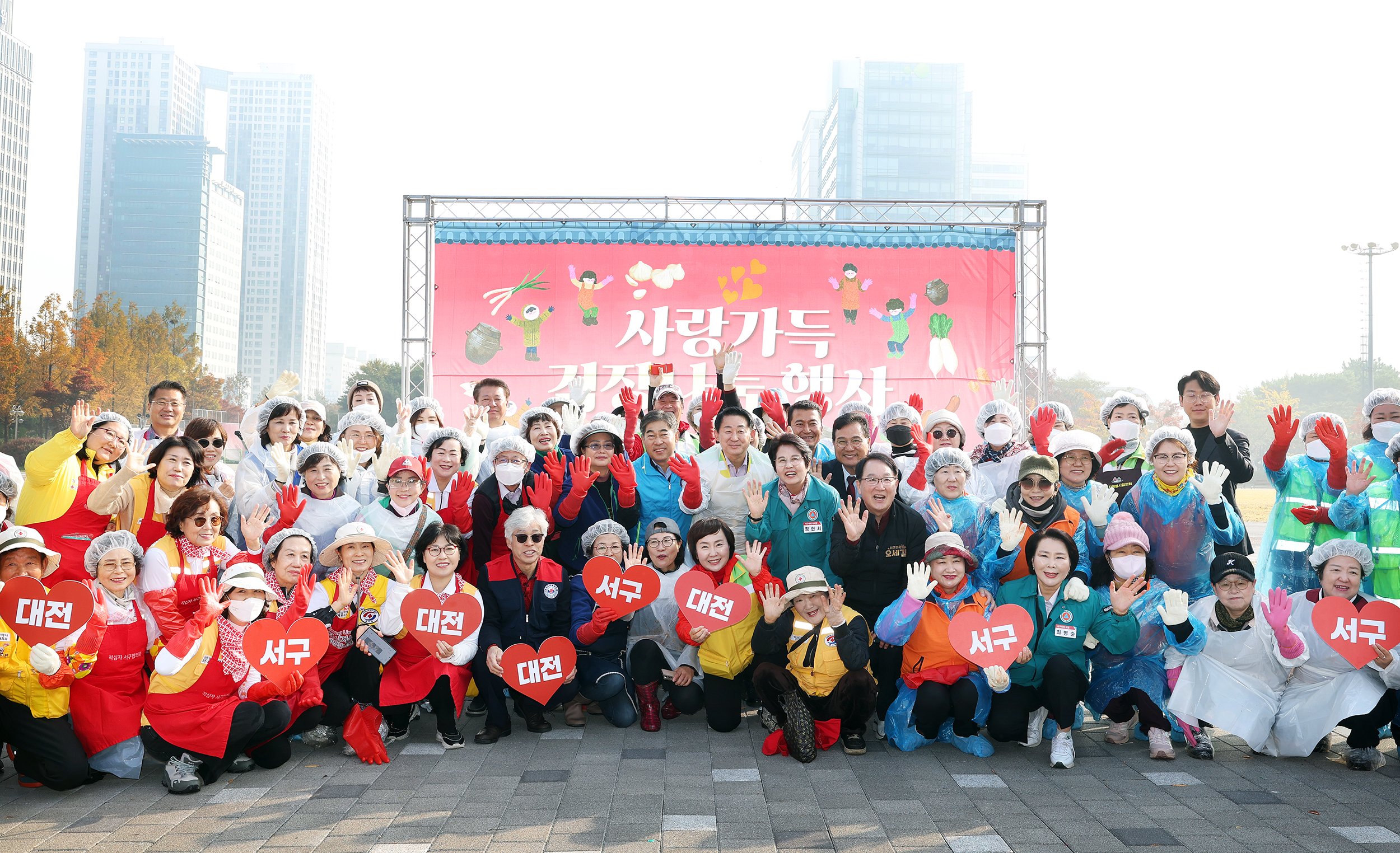[충청뉴스큐] 대전 서구 자원봉사센터는 6일 샘머리공원에서 관내 10여 개 봉사단체와 함께 소외계층을 위한 사랑 가득 김장 나눔 행사를 진행했다.