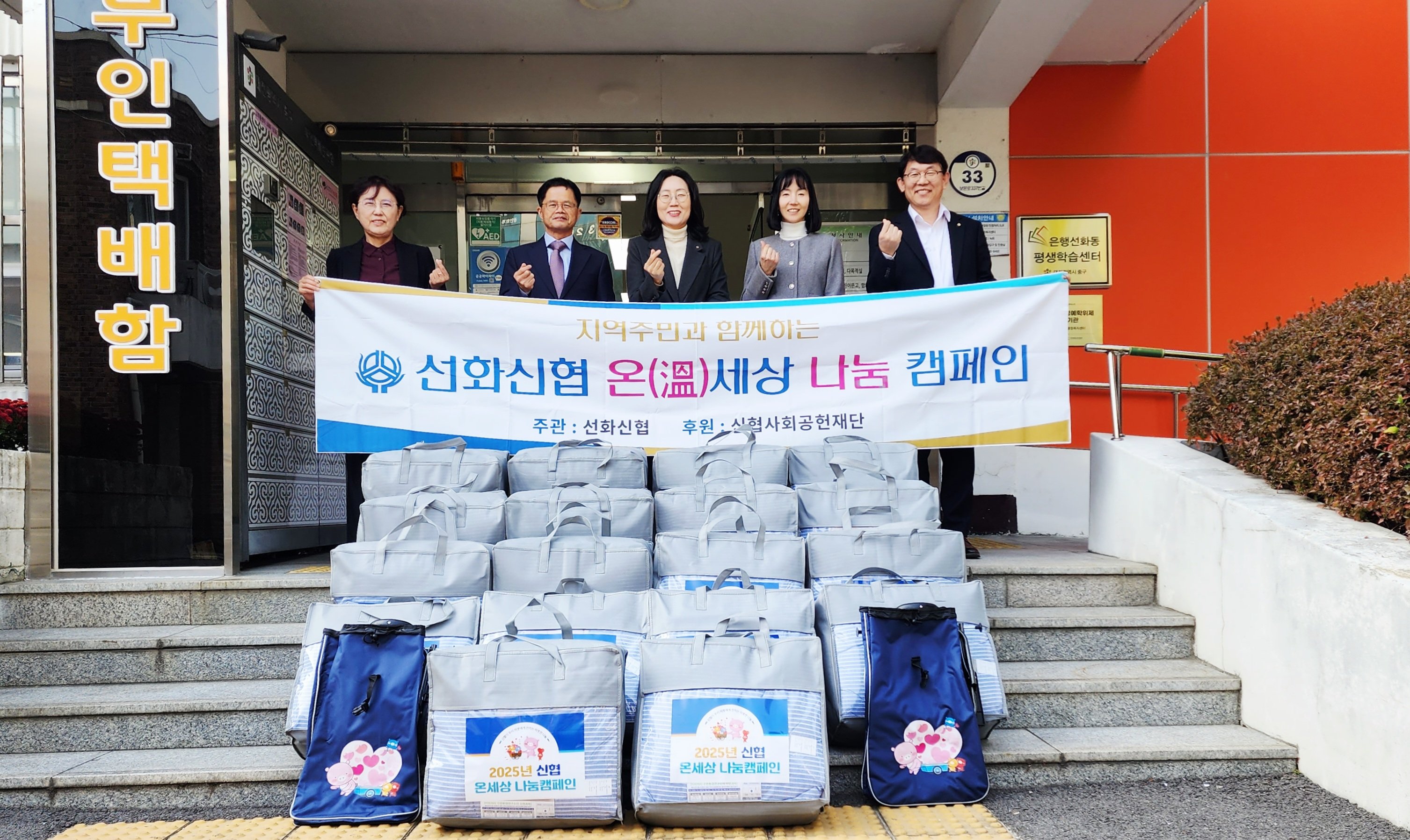 이종환 동장은 "최근 급격히 추워진 날씨로 난방에 어려움을 겪는 분들이 많았는데 선화신협의 후원이 겨울나기에 큰 도움이 될 것 같다”며 “기탁된 이불은 도움이 꼭 필요한 분들에게 신속히 전달하겠다”고 답했다.