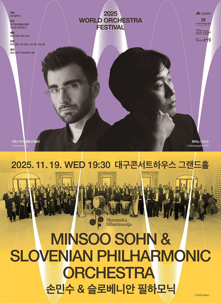 [충청뉴스큐] 대구콘서트하우스는 월드오케스트라페스티벌의 일환으로 ‘손민수 & 슬로베니안 필하모닉’공연을 11월 19일 오후 7시 30분 그랜드홀에서 개최한다.