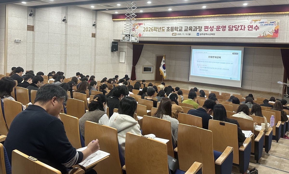 [충청뉴스큐] 광주시교육청이 10~11일 광주시교육청교육연수원에서 광주지역 초등학교 교육과정 담당자 160여명을 대상으로 ‘2026학년도 초등학교 교육과정 편성·운영 연수’를 실시했다.