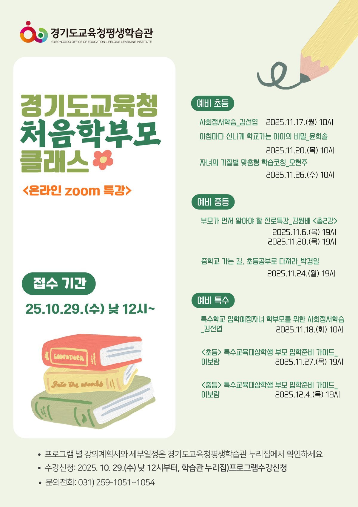 11월부터 12월까지 운영되는 이번 프로그램은 예비 초등·중등·특수 학부모를 위한 맞춤형 교육과정으로 자녀의 새로운 학교생활 적응을 지원하기 위해 마련됐다.