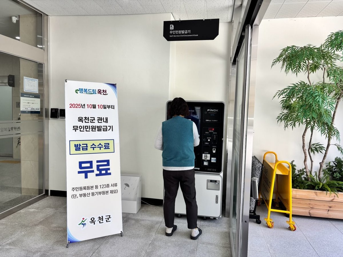 또한 지난 10월 10일부터 개정된 ‘옥천군 제증명 등 수수료 징수 조례’시행에 따라 모든 무인민원발급기 수수료를 전면 무료화해 군민 누구나 부담 없이 설치된 무인민원발급기에서 주민등록등본, 가족관계증명서 등 총 123종의 제증명 서류를 무료로 발급받을 수 있다.