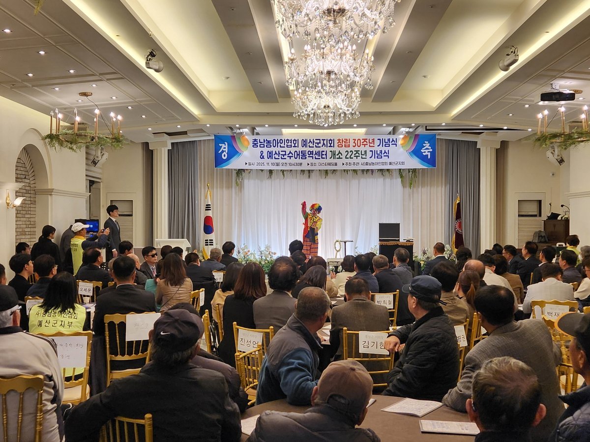 [충청뉴스큐] 예산군은 지난 10일 더스타웨딩홀에서 ‘충남농아인협회 예산군지회 창립 30주년 기념식’과 ‘예산군수어통역센터 개소 22주년 기념식’을 개최했다고 밝혔다.