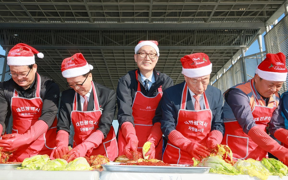 올해로 열일곱 번째를 맞은 이번 김장대봉사는 유득원 대전시행정부시장, 조원휘 대전시의회 의장, 설동호 대전시교육감, 5개 구청장 등을 비롯해 자원봉사 사회공헌 협약을 맺은 38개 기업 임직원 등으로 구성된 자원봉사자 800여 명이 함께 참여해 의미를 더했다.