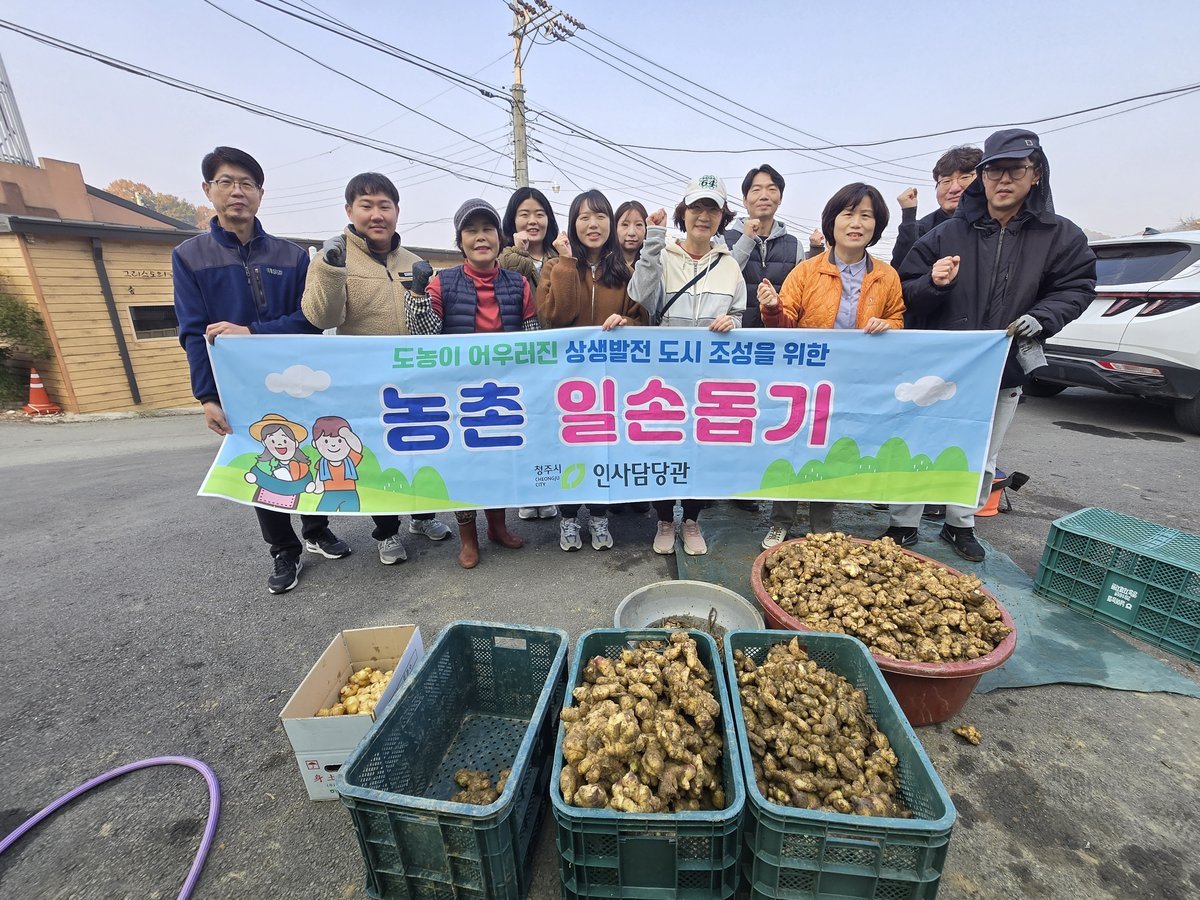[충청뉴스큐] 청주시 인사담당관은 13일 서원구 남이면 팔봉리 소재의 생강 농가를 찾아 일손을 도왔다.