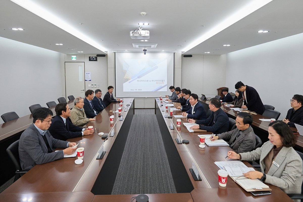 오 시장은 먼저 아산디지털일반산업단지 내 반도체 핵심 소재 기업 하나머티리얼즈와 하나마이크론을 방문해 생산라인을 점검하고 간담회를 가졌다.