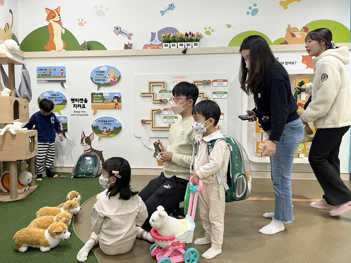 북부체험교육원 토요가족체험에 보호자와 함께 참여하고 있는 유아들 모습