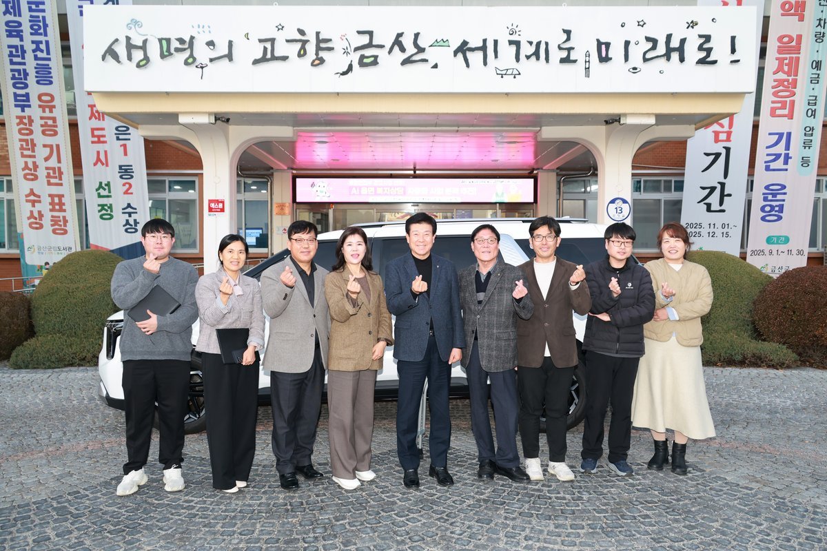 [충청뉴스큐] 금산군은 대중교통을 이용하기 어려운 교통약자의 이동 편의 증진을 위해 지난 17일 군청 현관 앞에서 교통약자 특별교통수단 증차 인도식을 개최했다.