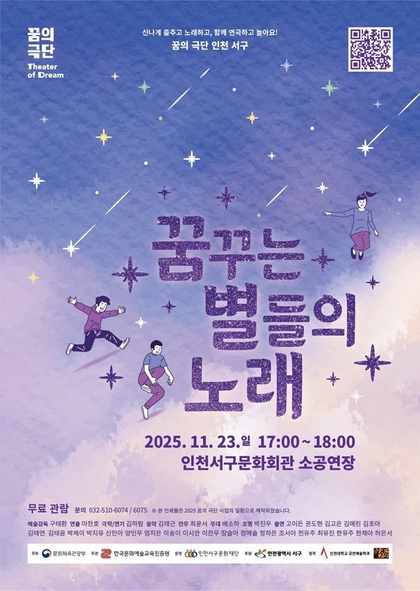 [충청뉴스큐] 인천서구문화재단이 오는 11월 23일 오후 5시, 인천서구문화회관 소공연장에서 ‘2025년 꿈의 극단 인천 서구 정기공연 - 꿈꾸는 별들의 노래’를 개최한다.