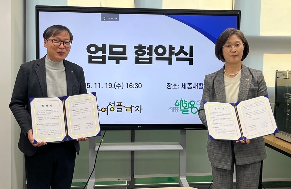 [충청뉴스큐] 세종시사회서비스원이 운영하는 세종여성플라자와 세종새활용센터는 19일 세종새활용센터 회의실에서 성평등 문화확산과 지속가능한 자원순환 도시 세종 실현을 위한 업무협약을 체결했다고 밝혔다.